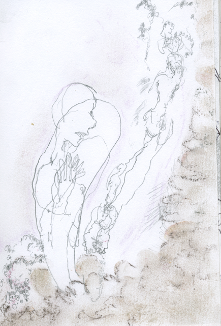 I added washes to one of the drawings. Fuseli drew mainly with ink and wash. His drawings are bizarrely exaggerated, and influenced both the Surrealists and 20th Century super hero cartoonists. More later….
